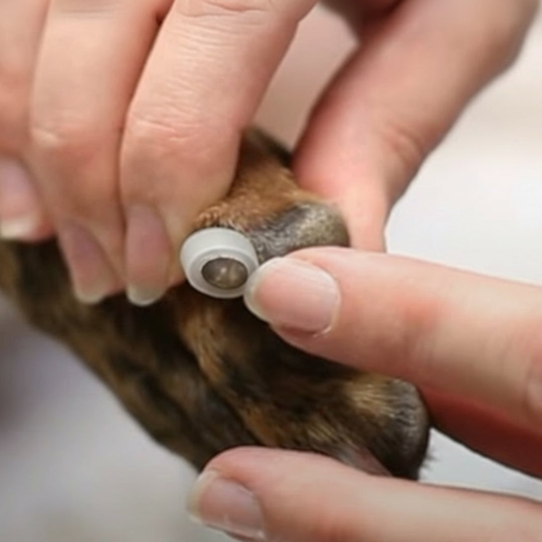 Hold and support the dog’s toe firmly so it doesn't twist during application.